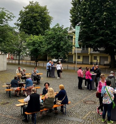 In der Pause konnten die Gäste auf dem Theatervorplatz eine Auswahl an Weinspezialitäten genießen. Die gemütliche Loungestimmung lud zum Verweilen ein, während man sich über die bisher erlebten musikalischen Höhepunkte austauschte.