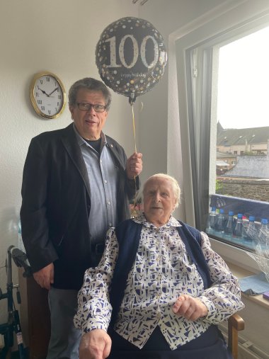 Radermacher überbrachte zudem die Glück- und Segenswünsche des Oberbürgermeisters Lennart Siefert, des Landrats Jörg Denninghoff und des Ministerpräsidenten Alexander Schweitzer. Außerdem überreichte er der Jubilarin ein Geldpräsent des Rhein-Lahn-Kreises.