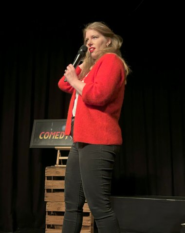 Als zweite Performerin betrat Teresa Jung die Bühne und berichtete von ihrer skurrilen Nahtoderfahrung mit einer Pringles-Dose. Als Mutter von Zwillingen, Frau eines Ex-Rappers und True-Crime-Fan, ist es kein Wunder, dass sie in der Comedyszene gelandet ist. Mit trockenem Humor erzählte Teresa dem Lahnsteiner Publikum, wie sie es genießt, von ihren Kindern nicht zu Geburtstagsfeiern eingeladen zu werden – schließlich gibt es dort keinen Alkohol, aber dennoch überall Erbrochenes.