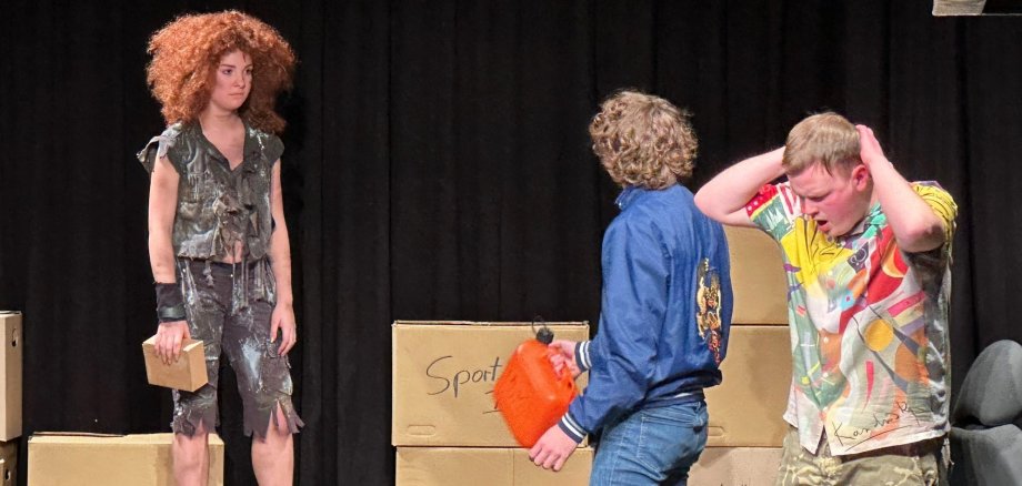 Das reduzierte Bühnenbild, gestaltet von Marion Durben-Schneider, schafft einen Raum, in dem sich die inneren und äußeren Welten der Figuren spiegeln. Die wenigen Elemente, bestehend aus einem umgekippten Auto, einer Matratze und dem Himmel, reichen aus, um die gesamte Stimmung der Geschichte zu transportieren. Die klare, minimalistische Gestaltung stellt die Mimik und Gestik der Darsteller in den Vordergrund und sorgt so für maximale Wirkung ohne visuelle Ablenkungen. Der Inszenierung gelingt es, den Spagat zwischen Unterhaltung und Tiefgang zu meistern. Es gibt reichlich humorvolle Momente, die das Publikum zum Lachen bringen, aber auch solche, die die Melancholie und die damit verbundene Sehnsucht der Jugend einfangen. Die wechselnden Tempi zwischen humorvollen Szenen und emotionaleren Passagen sorgen dafür, dass die Vorstellung nie einseitig wird.