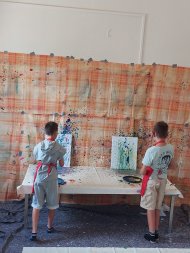 Doch auch im JUKZ selbst wurde es nicht langweilig. Besonders beliebt war das bunte Actionpainting, bei dem die Kinder ihre künstlerische Ader ausleben konnten – farbenfroh, kreativ und mit viel Freude entstanden dabei bunte Kunstwerke.