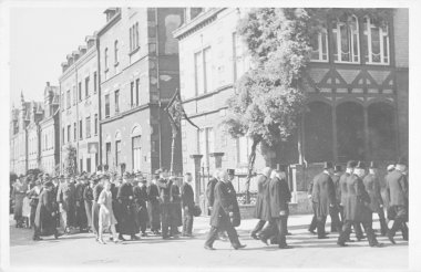 Das Rätselbild der letzten Folge zeigte einen Leichenzug im Jahr 1934. Die Teilnehmer, getrennt nach Geschlechtern, biegen auf dem Weg zum Friedhof Sebastianusstraße von der Wilhelmstraße in die Frühmesserstaße ab. Die Herren tragen Zylinder, die Frauen sind schwarz gekleidet mit Hut. Dazwischen wird ein Tragekreuz mit Trauerflor getragen. Im Hintergrund ist das Eckhaus zur Frühmesserstraße zu erkennen, dessen Balkon in der Nachkriegszeit modernisiert wurde. Der einst übliche Vorgarten mit Metallgitter ist einem Parkplatz gewichen. Die Häuserzeile an der Wilhelmstraße hat die Kriegsjahre hingegen fast unverändert überdauert.