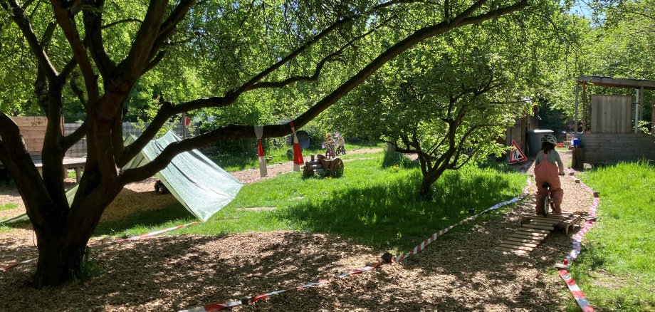 Auf die kleinen Fahrerinnen und Fahrer wartete eine eigens konzipierte Strecke, die mit Absperrband klar markiert war. Mit Fahrrädern, Laufrädern, einem Quad und einem Bobbycar verlief der Abenteuerparcours durch Tunnel und über eine kleine Brücke.